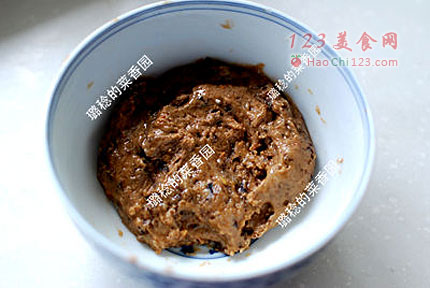 6、将饧好的面团揉匀,揪成大小均等的剂子,擀成中间厚边缘薄的面皮,包入玫瑰馅料。