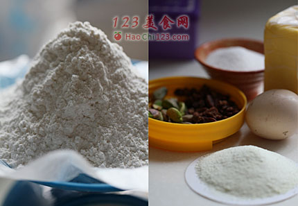3、天太冷,黄油不易融化,所以用热水软化后,加入奶粉和糖,打至蓬松。
