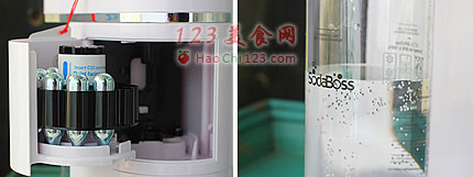 2、杯子里面提前装入矿泉水,顺时针转动旋转钮等充满气,逆时针旋转顶部按钮,空的二氧化碳子弹调入桶中即可,制作好的气泡水拧紧盖子密封保存。