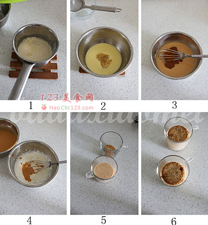 2、过滤,加入泡软并沥干水分的吉利丁片混合融解。隔冰水凉凉。