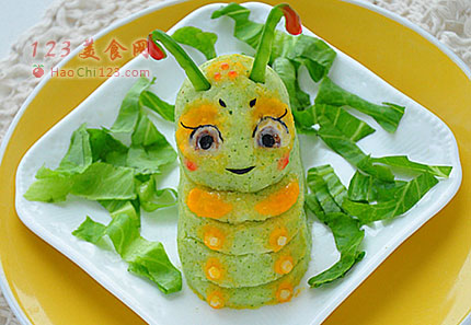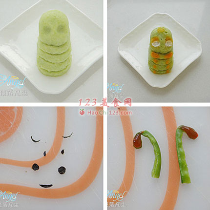9、带一次性手套将土豆泥做成站立的虫子身体,上面团一个圆球放上做头。