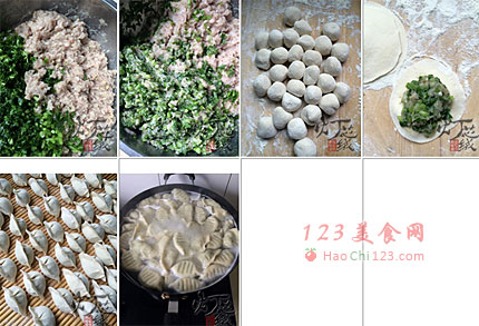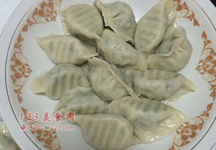 12、坐锅烧水,水开后下入水饺,煮开后加入一点凉水,继续盖盖煮,三点三开后,盛出。