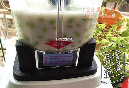 3、毛豆焯水后与素高汤一起放入锅中煮开。