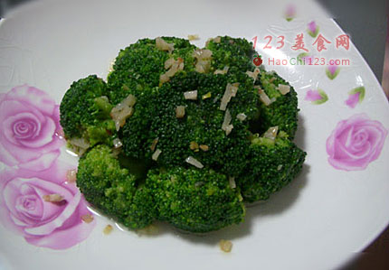 6、将西兰花放入碗中磊好,摆盘即可(在碗中磊好,盖上盘子,翻过来就可以了)。