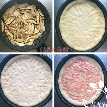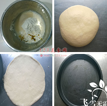 10、铺入比萨盘的饼底再次发酵20分钟。