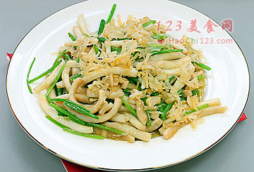 11、装盘后,撒上用油炸过的干贝丝即可。