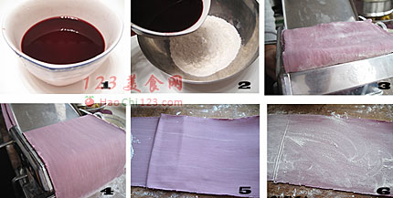 8、压好的面条撒适量干粉,防止粘连。