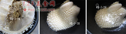 3、加淀粉和少许盐搓洗几分钟,冲洗干净。