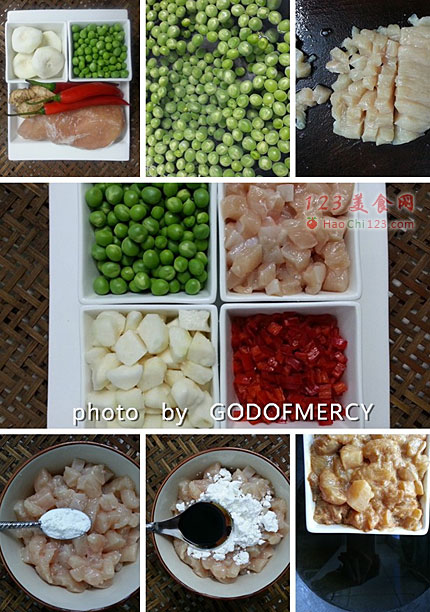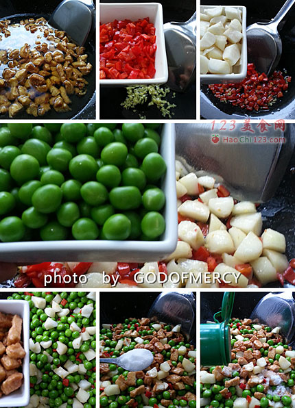 1、荸荠、鸡脯肉、豌豆、朝天椒在之前都只能炒至半熟,最后汇入到一起时,才恰到好处。