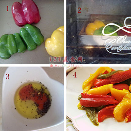 贴士:烤过的甜椒放在吸油纸上,吸掉多余的油脂,这样更健康,没有肥胖的烦恼。[LaoYanHuo.com]