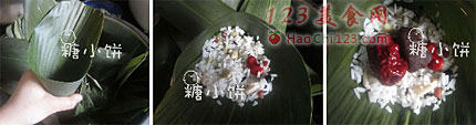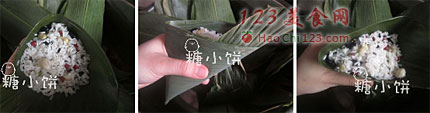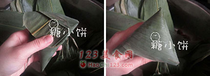 11、这时候顶面看还是刚才那个三角形的样子,全部包好以后高压锅30-40分钟煮熟即可。