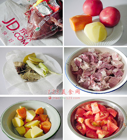 2、把番茄土豆胡萝卜洗净备用。