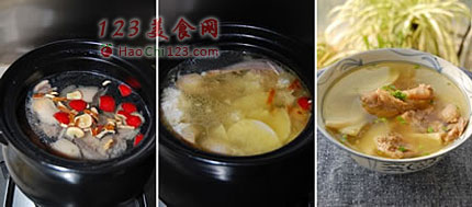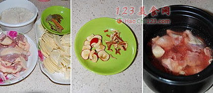 7、煮开后加几勺酒酿,还有冬笋,再次煮开后转小火,炖一个小时左右即可。