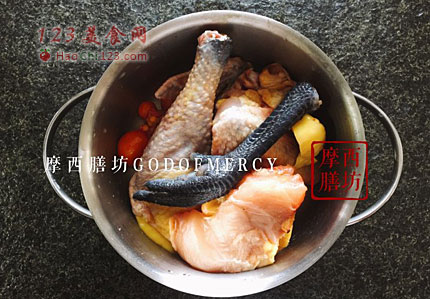 2、三口之家,一整只鸡吃不完,因此用了半只土鸡。
