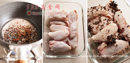 7、将做法6倒入做法4的熟鸡翅碗中,所有液体深度会高过于食材,室温浸泡后待凉。