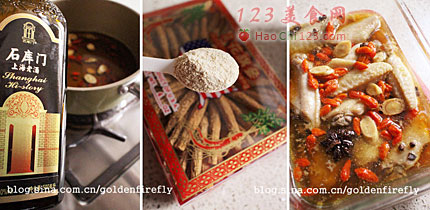 6、做法5的酒液溫涼后,放入花旗蔘粉1小匙,混合均勻。