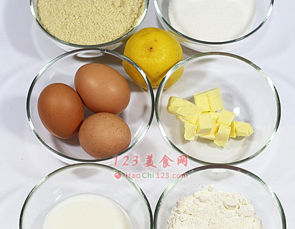 3、用刮皮刀将柠檬皮轻轻刮下,加入牛奶,融化的黄油及柠檬皮屑,搅拌均匀。