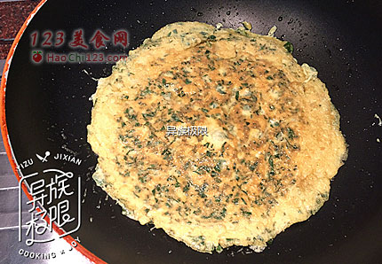 6、小火慢煎至鸡蛋两面金黄,熄火趁热吃掉。