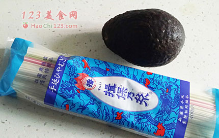 4、再将鳄梨泥放在面条上,用筷子拌匀即可。