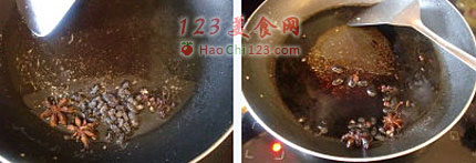 5、另起油锅,爆香花椒,八角和豆豉。