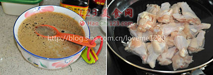 2、生抽,老抽,红糖,腐乳全部放入碗中搅拌均匀。