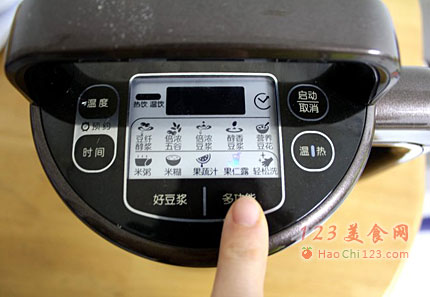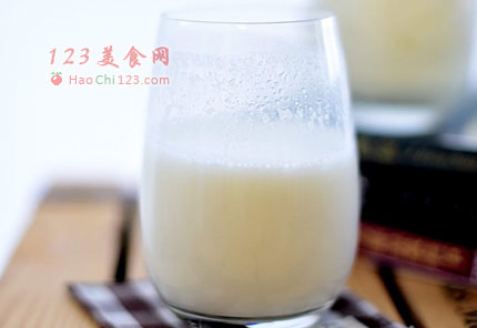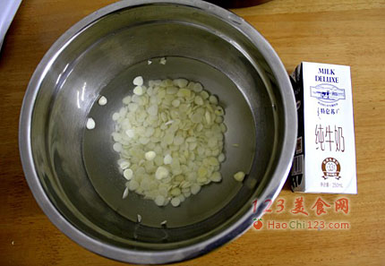 2、早起和水还有奶一起放入豆浆机,启动果仁露功能,成熟即可。