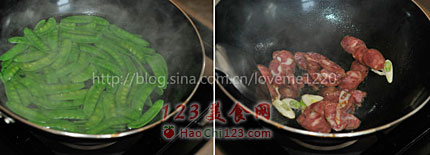 4、这道菜的口感是,荷兰豆和莲藕都是爽脆的口感,香肠是干香的。