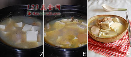 7、大约半小时后再加入豆腐和冬笋。