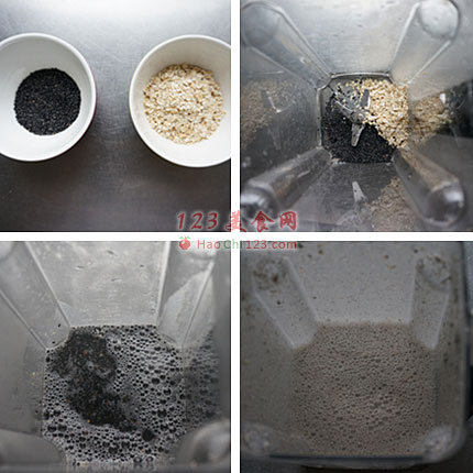 2、将熟芝麻即食燕麦片倒入料理机中。