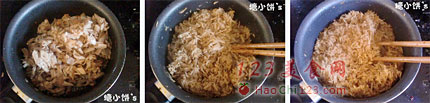 6、肉碎会越来越散,炒至水分基本炒干即可。