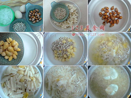 4、5、汤锅放适量的水,放白果和薏米。