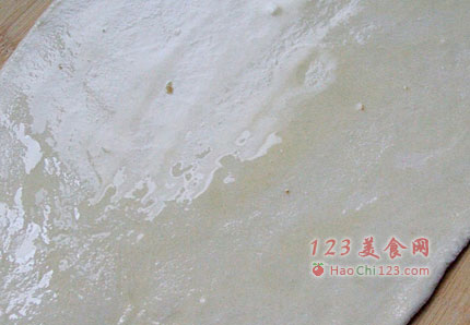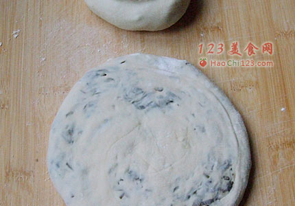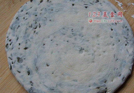 6、用擀面杖擀成自己喜欢的厚度,薄的易熟。