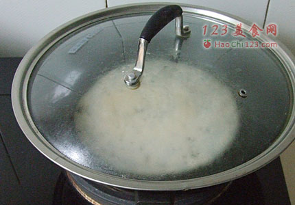 7、锅子烧热加薄油,放入面饼,盖上锅盖,中火加热。