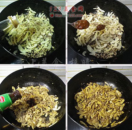 5、依次加入生抽、黄豆酱翻炒至入味,最后加入少许蚝油翻炒均匀即可。