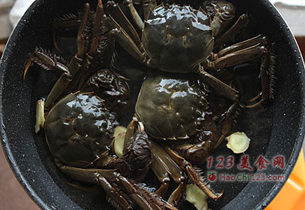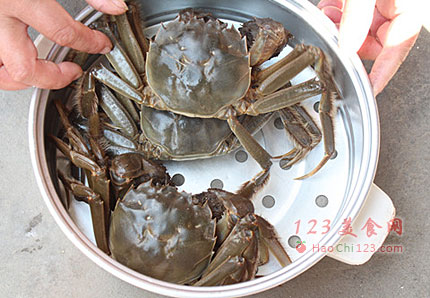 3、放入大闸蟹。