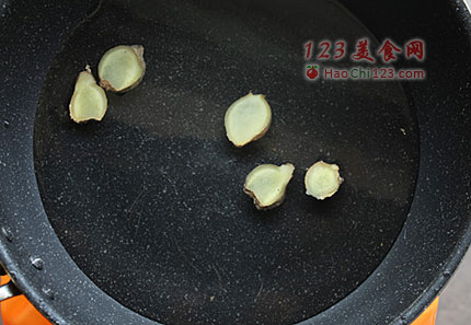 2、锅里,放入少量盐,姜片和水。