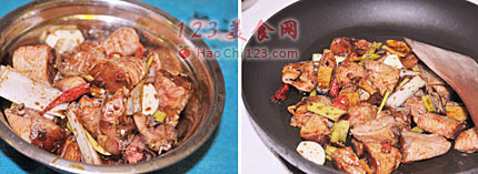 4、鸡翅要炒到全部变色,腌料汁充分被鸡翅包裹,在放入番茄土豆翻炒。