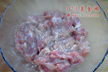 2、羊肉切片上浆:虾油、料酒、少许酱油、蛋清、淀粉、生油抓匀。