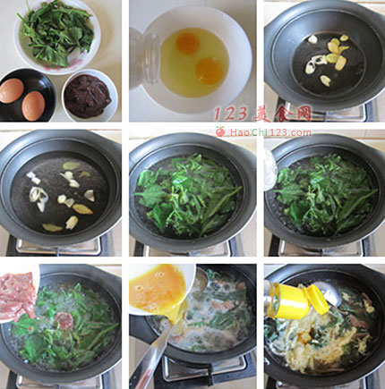2、先煮南瓜叶,再放入猪肝进去煮,最后倒入蛋液;要煮出漂亮的蛋花,顺着个勺子或者筷子倒出来,就可以形成漂亮的蛋花了。[LaoYanHuo.com]