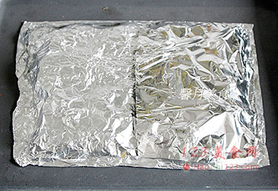7、将肉用锡纸包严密(用一整张锡纸包住即可,下图是我太检省用了几张现成的锡纸包的)。