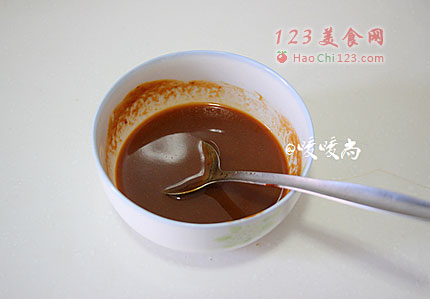 3、甜面酱、番茄酱和适量的凉白开调匀作为酱汁。