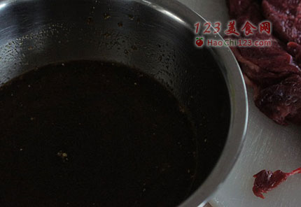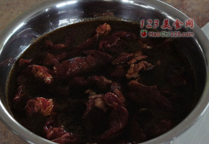 3、将牛肉放入腌料里腌制4-12个小时。