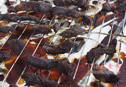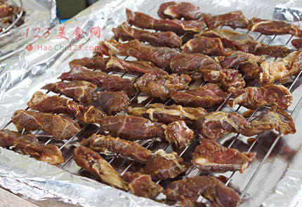 6、放入烤箱,4个小时,牛肉表面变干但是还很有嚼劲。