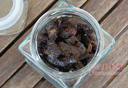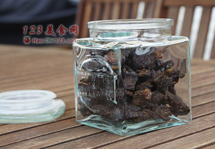 7、彻底放凉,放入玻璃罐,不要盖上盖子保存。冬天在室温下放在阴凉干燥的地方可以保存1个星期,或者装入保鲜盒放冰箱可以保存6个星期。现在新西兰是盛夏,偶就把牛肉干放冰箱保存了。