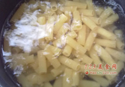 3、向把笔尖面放入含食盐的沸水中煮十分钟。