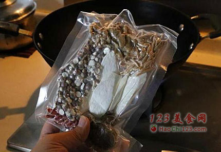 3、加入阿佘靓汤的汤包。