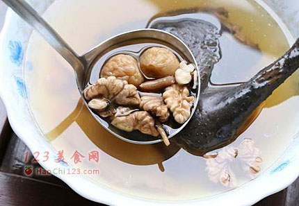 2、太子参具有补益脾肺,益气生津。治肺虚咳嗽,脾虚食少,心悸,怔忡,水肿,消渴,精神疲乏。加上补肾补脑的核桃,还有茨实,淮山,无花果等相得益彰。这是一道非常营养的滋补汤水,不管是老人还是孩子都合适,是一款补而不燥的靓汤。一煲健脾补气的靓汤就煲好了,而且大家看到吗,三乌鸡真的是很少脂肪的,没有剥皮煲了3个小时居然一滴油都没有。[LaoYanHuo.com]