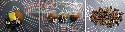 3、醒面期间将巧克力切成碎块备用,我用的是黑巧克力,如果想要香甜一点的话可以用牛奶巧克力。