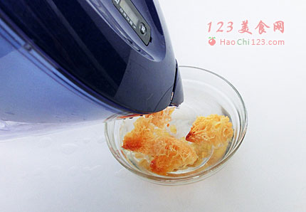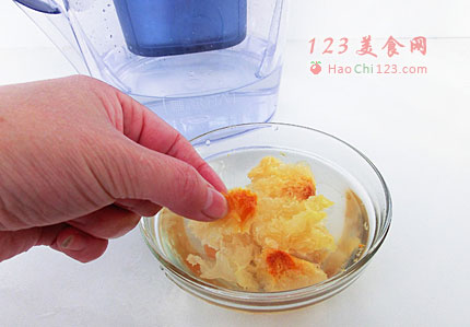 2、银耳和皂角米加过滤水浸泡2小时,用的是碧然德滤水壶过滤的水,经过多重过滤,水中的杂质和水垢都大大减少了,口感更清纯。