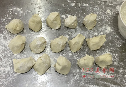 5、将发酵好的面团取出,揉匀。分面剂(这个大小完全看个人喜好,我蒸的比平时算小的了,大约50克一个的面剂)。